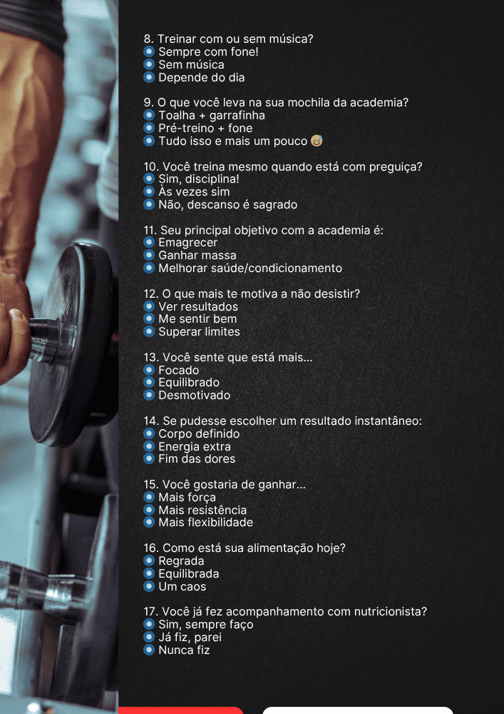Lista com as melhores ideias de enquetes para o perfil da sua Academia.