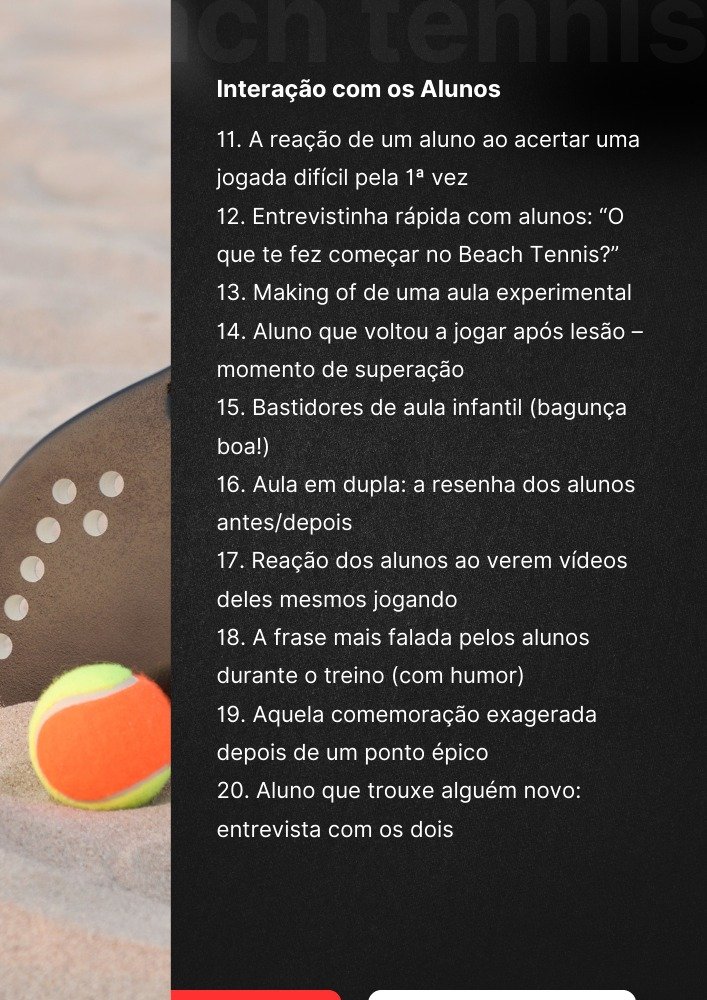 Lista com as melhores ideias de Posts de Bastidores para Instagram de Beach Tennis.